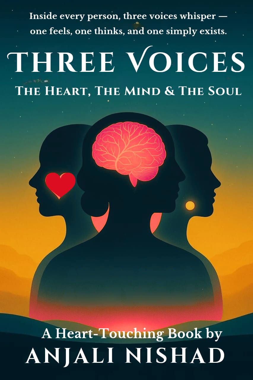 “Three Voices – The Heart, The Mind & The Soul” is a heart-touching journey within yourself — where emotions, thoughts, and peace speak in silence. This book helps you understand your overthinking, find inner calm, and reconnect with your true self.